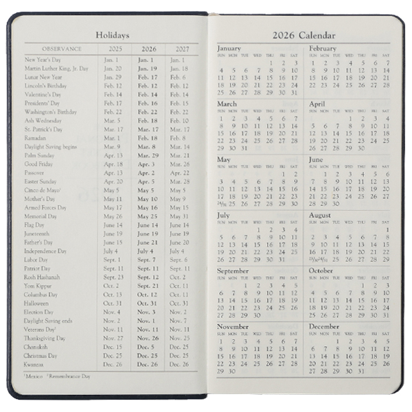 収録:合衆国祭日一覧 前年・当年・翌年カレンダー 見開き1ヶ月ブロックダイアリー