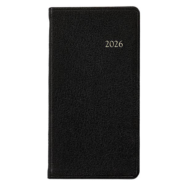 シボ感のあるゴートスキン(山羊革)カバーに表紙への年号のゴールドスタンプ、というシンプルなデザインが素材の良さと機能美を際立たせています。