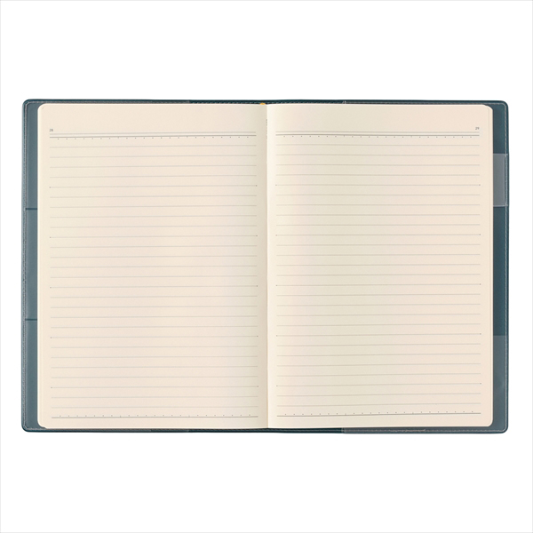 【週間ページ】見開き1週間で、左右のページに日付が分割されているメモタイプのレイアウト(月曜始まり)。1日分のスペースが広いので、日記などの記録に便利です。