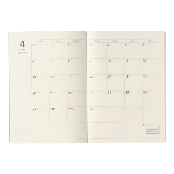 マンスリータイプはノートとの組み合わせはもちろん、2週間ブロックタイプやレフトタイプと組み合わせても便利に使えます。