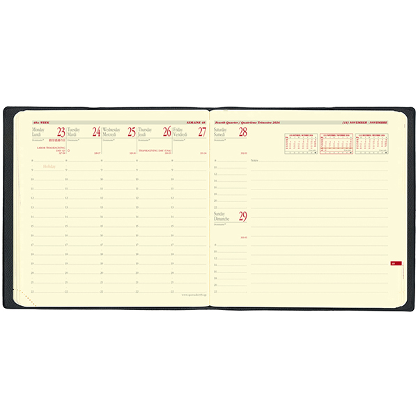 ●ウィークリー:両面1週間バーチカル(2025年11月17日~2027年1月3日)1週間見開きで時間軸(8~22時)を縦にレイアウトしたフォーマット。