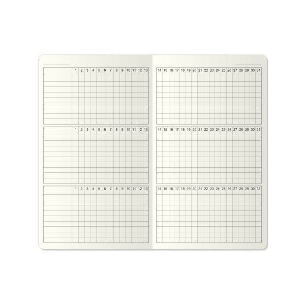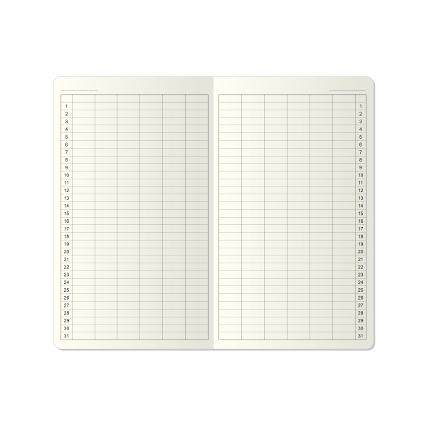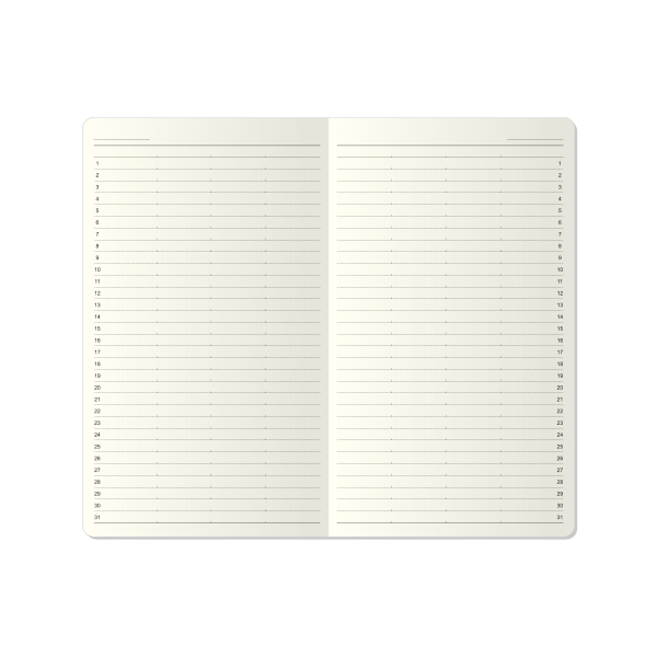 「横罫ノート」は1から31までの数字が印刷されていますので、毎日の行動を記録するログノートとしても使用できます。