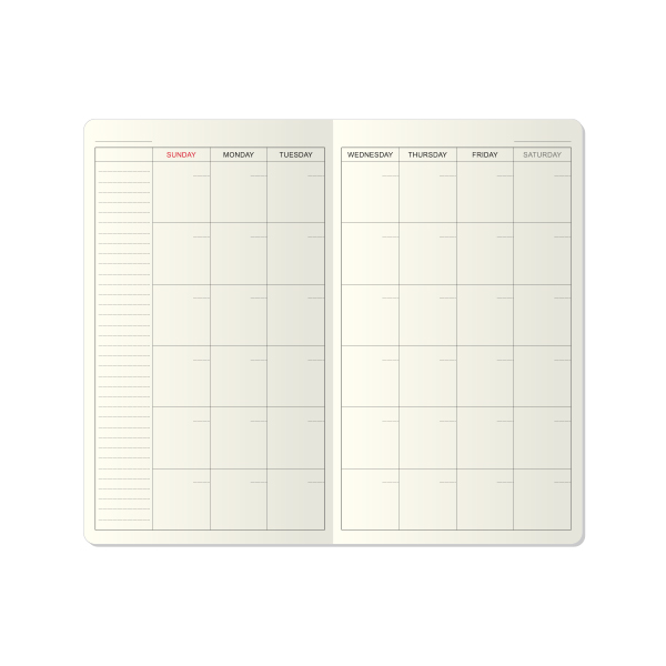 「マンスリー」、「ウィークリー」は日曜始まりのレイアウトを採用しています。