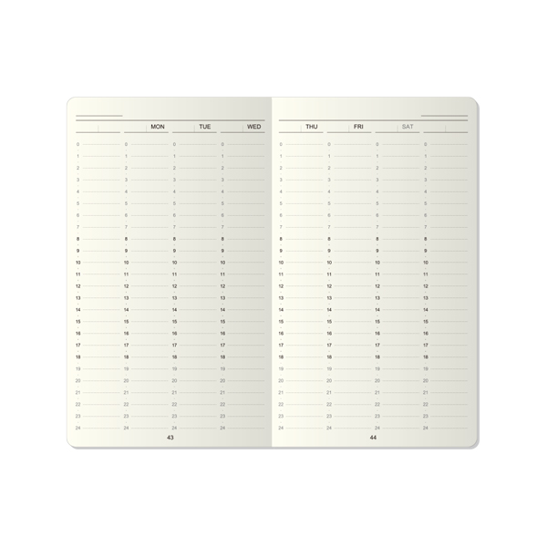 日曜始まり、 月曜始まり、どちらのレイアウトにも対応できるダイアリーです。