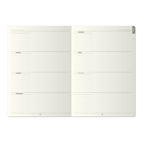 日曜始まり、 月曜始まり、どちらのレイアウトにも対応できるダイアリーです。