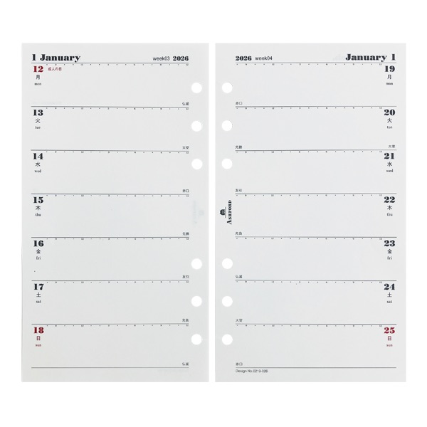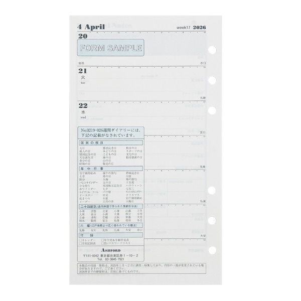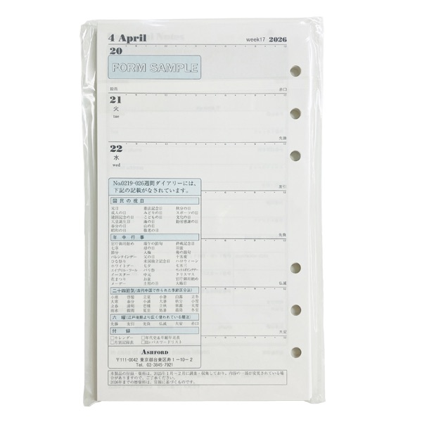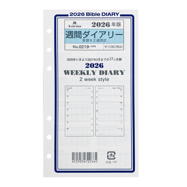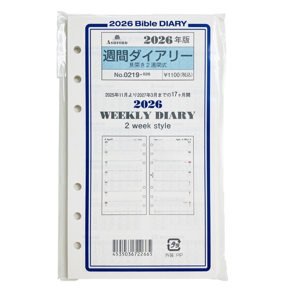 アシュフォード26 システム手帳リフィル 週間ダイアリー 見開き2週間式 BIBLE