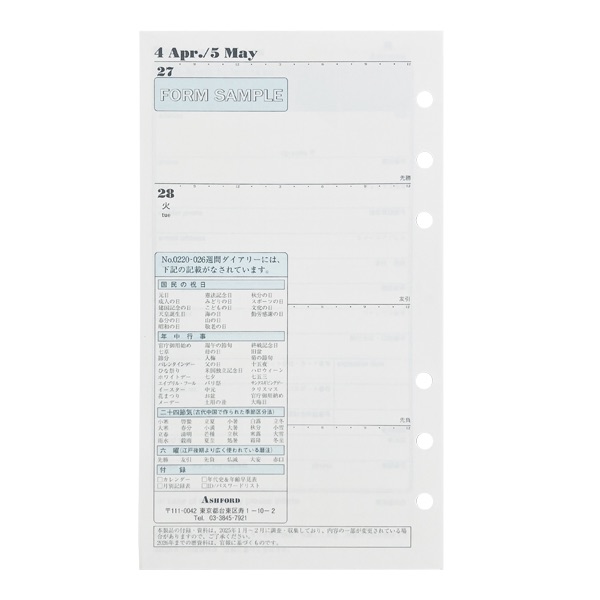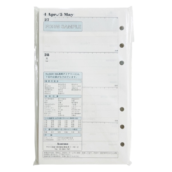 日付入りのダイアリーリフィルです。