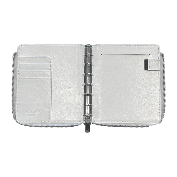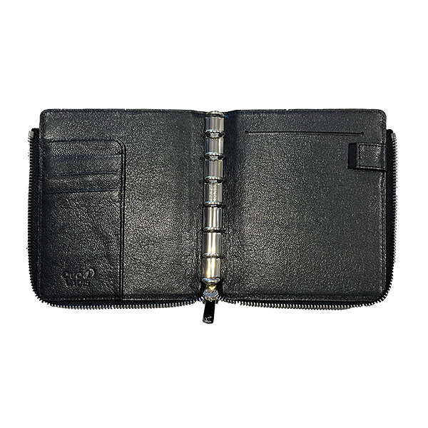 L字型ジップを採用したシステム手帳は、中身が厚くなっても開閉がしやすく、閉じたままでもペンを取り出せる便利な仕様です。