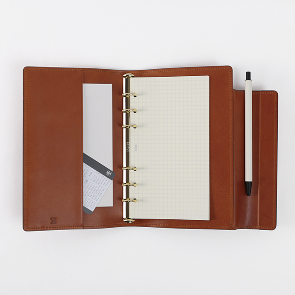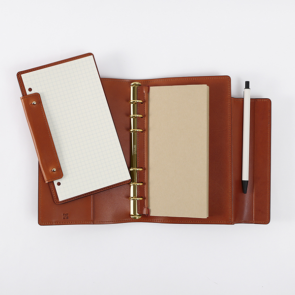 上質な革を使用した、シンプルで飽きのこないデザインのシステム手帳です。