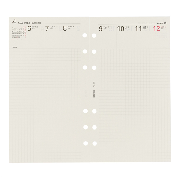 能率手帳の会社がつくるシステム手帳ブランドBindex by NOLTY(バインデックス バイ ノルティ)のリフィル(バイブルサイズ)。