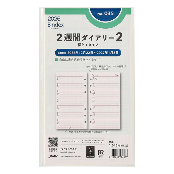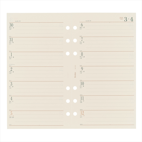 能率手帳の会社がつくるシステム手帳ブランドBindex by NOLTY(バインデックス バイ ノルティ)のリフィル(バイブルサイズ)。