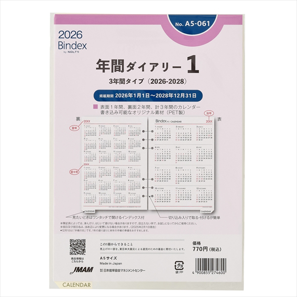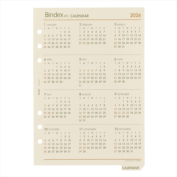 能率手帳の会社がつくるシステム手帳ブランドBindex by NOLTY(バインデックス バイ ノルティ)のリフィル(A5サイズ)。