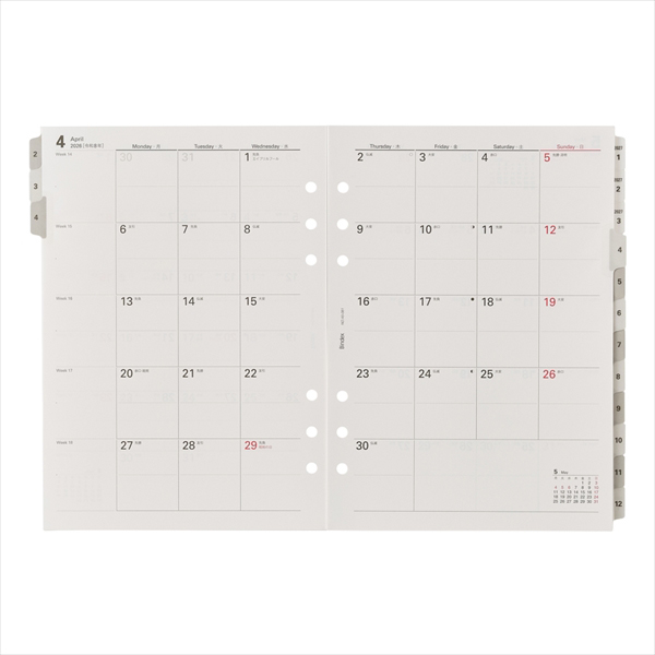 TOP 手帳 システム手帳 26 A5 月間ダイアリー カレンダータイプ インデックス付