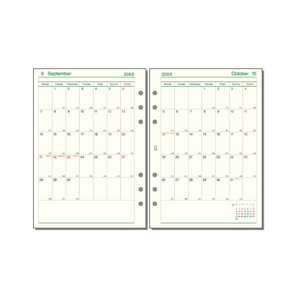 ●月間:見開き両面2ヶ月ブロック式