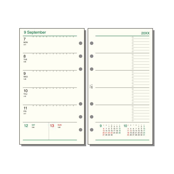 左ページ1週間スケジュール、右ページメモ。チェックリスト付です。