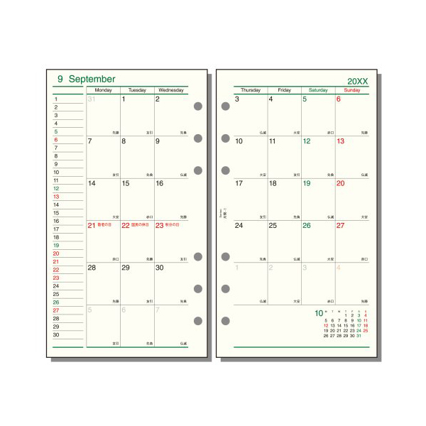 ●月間:見開き両面1ヶ月ブロック式