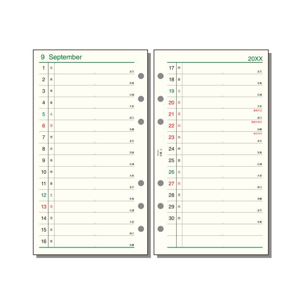 ●月間:見開き両面1ヶ月リスト式