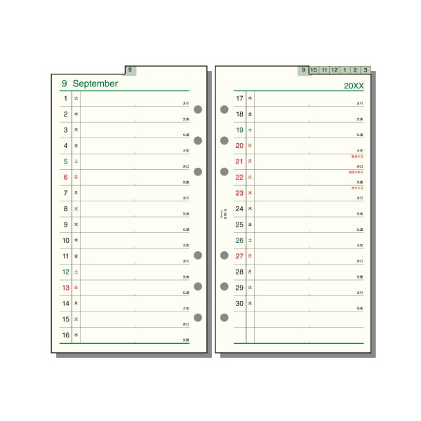 ●月間:見開き両面1ヶ月リスト式 インデックス付
