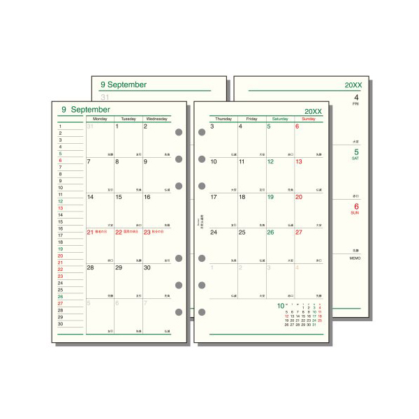 ●月間:見開き両面1ヶ月ブロック式