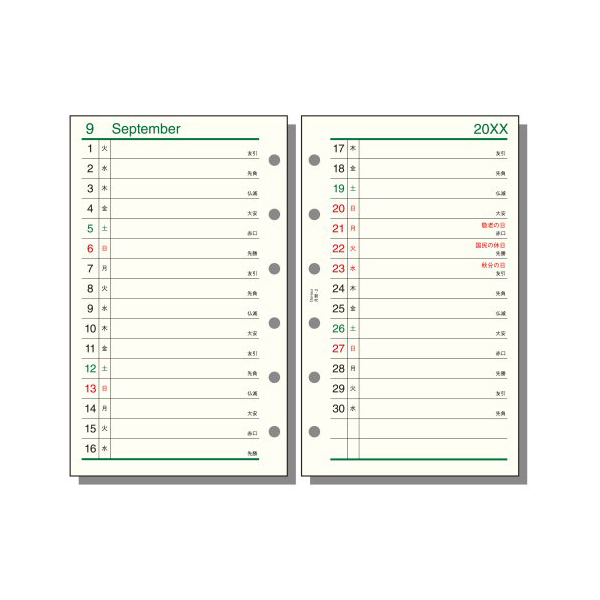 ●月間:見開き両面1ヶ月リスト式