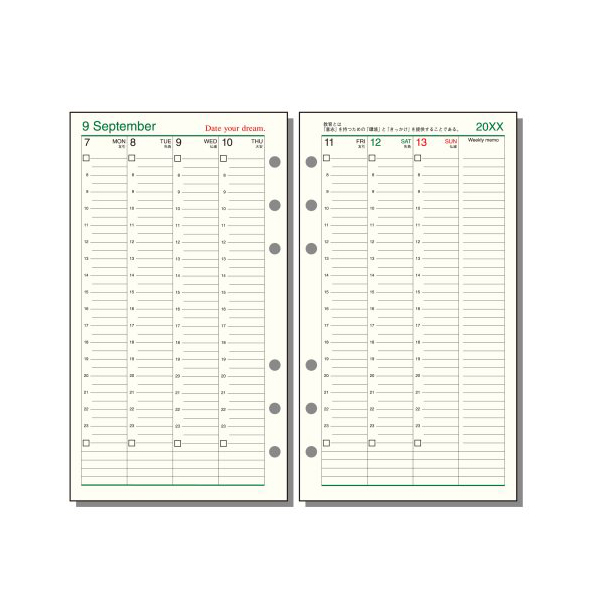 ワタミグループ創業者、渡邉美樹プロデュース「Date your dreamシステム手帳キット」のリフィルです。