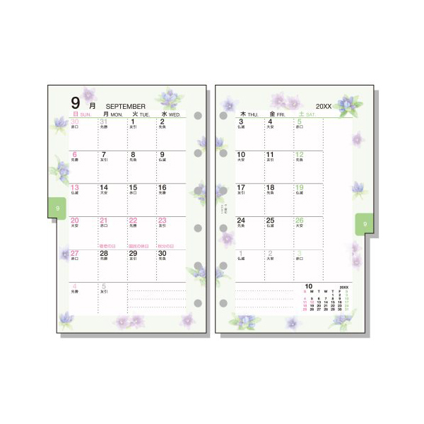 ●月間:見開き両面1ヶ月ブロック式 インデックス付