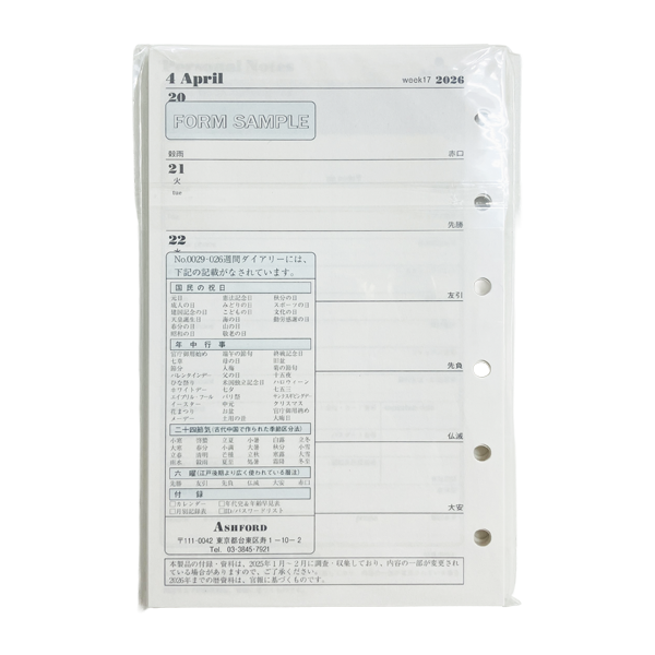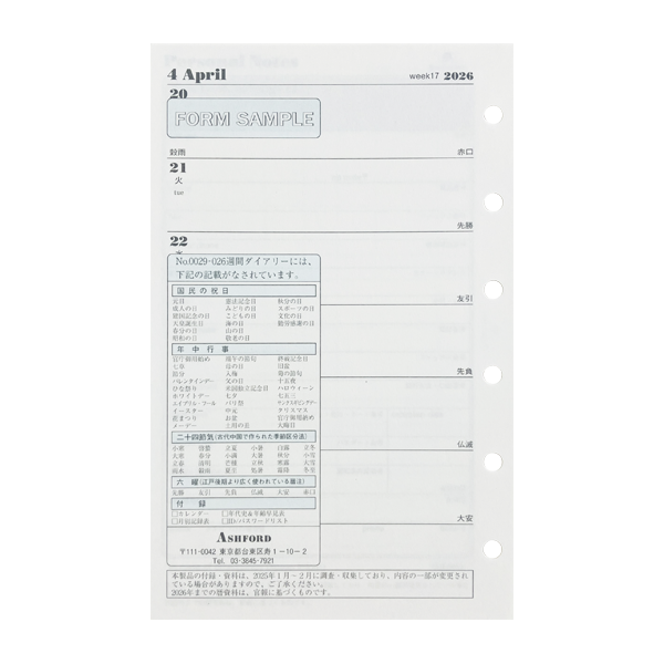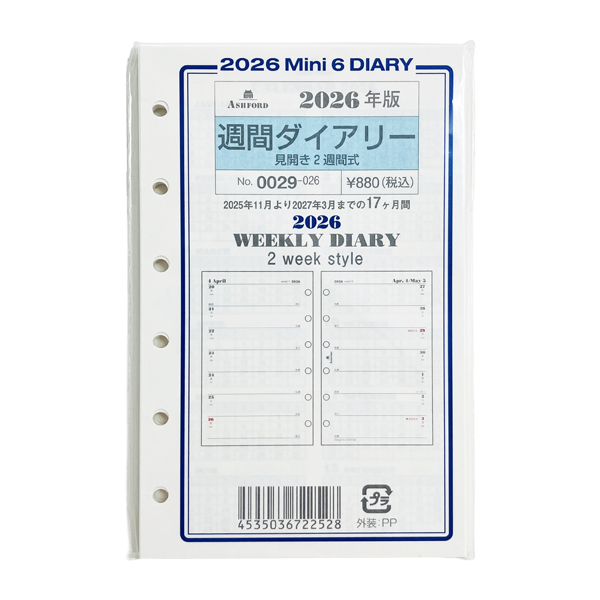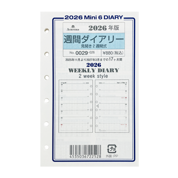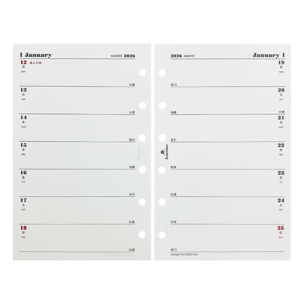 開いて2週間の予定が書ける、見開き2週間のレイアウトです。