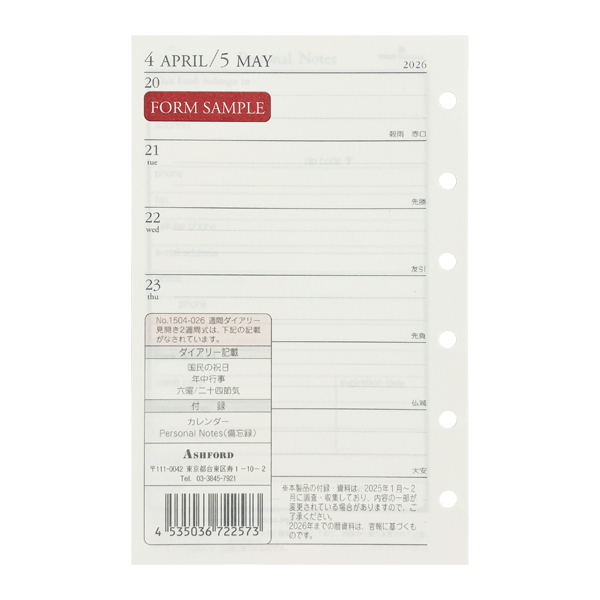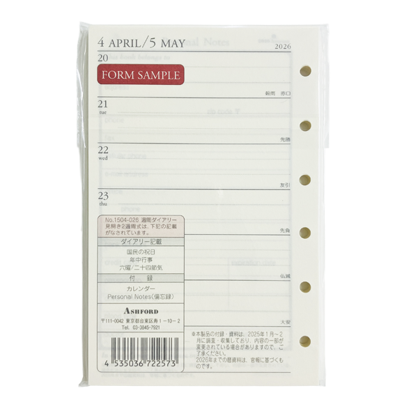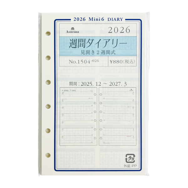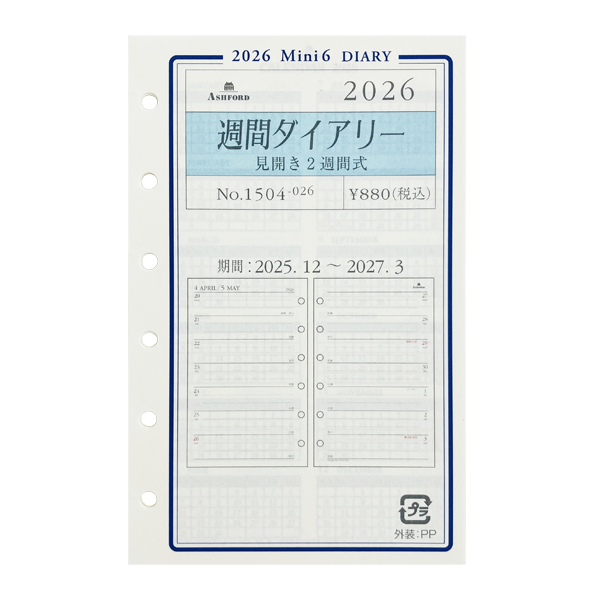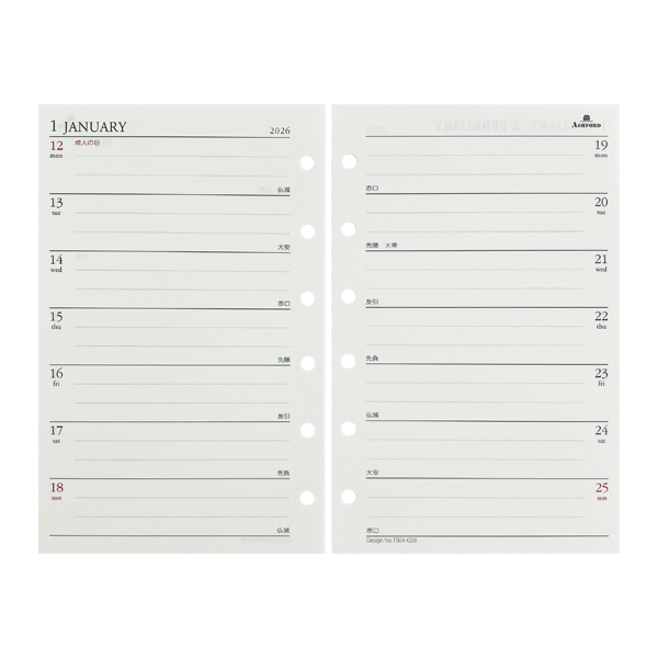開いて2週間の予定が書ける、見開き2週間のレイアウトです。