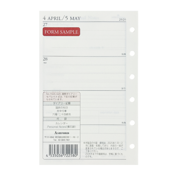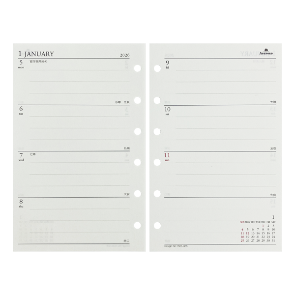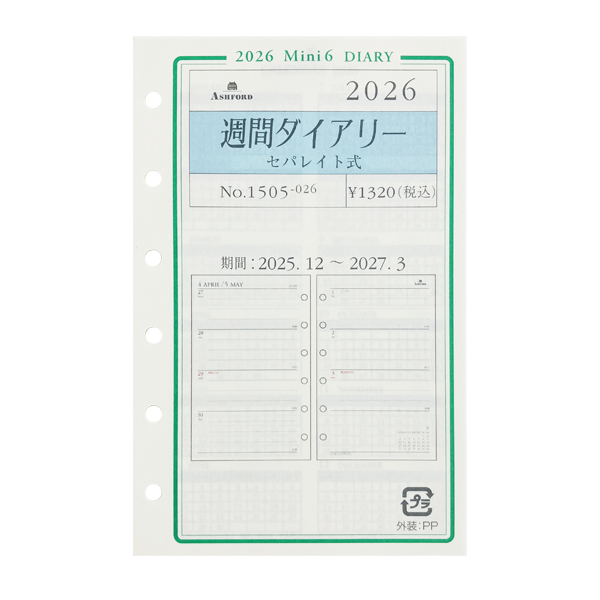 見開き1週間式で、1日のスペースを均等にしたダイアリーです。
