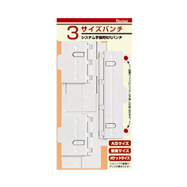 スライド式パンチ刃を利用することにより簡単に3タイプのパンチが可能になりました。A5サイズ・聖書サイズ兼用パンチ穴5.5mmФ、ポケットサイズパンチ穴4.5mmФ。