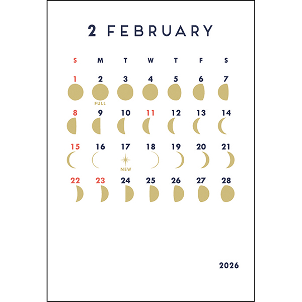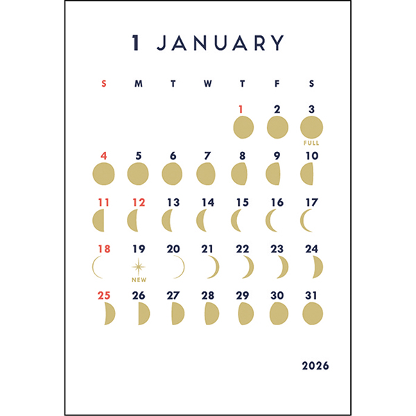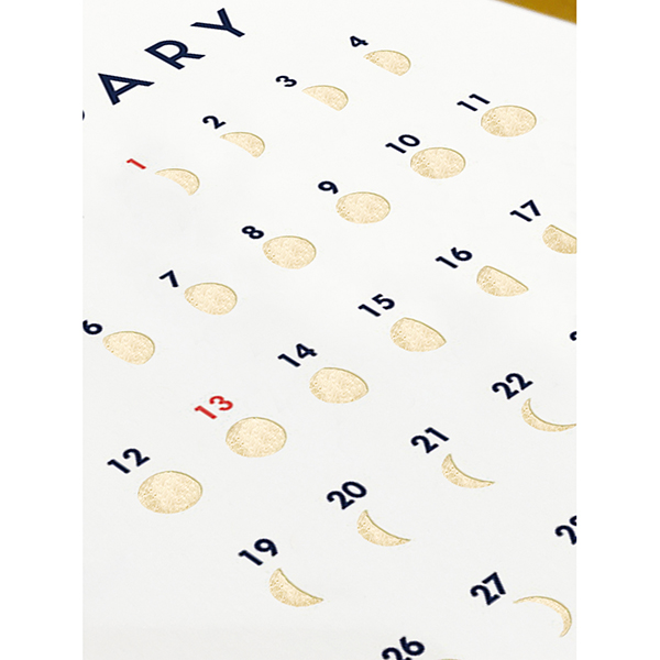月の満ち欠けをゴールド箔で表現したシンプルで上品なカレンダー。