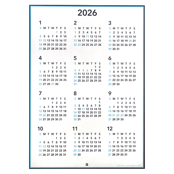 12ヶ月が一目で見渡せるポスターカレンダー。