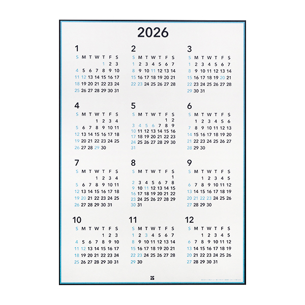 12ヶ月が一目で見渡せるポスターカレンダー。