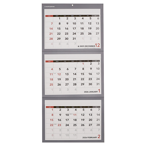 3ヶ月のスケジュールを一度に見渡せるカレンダーです。