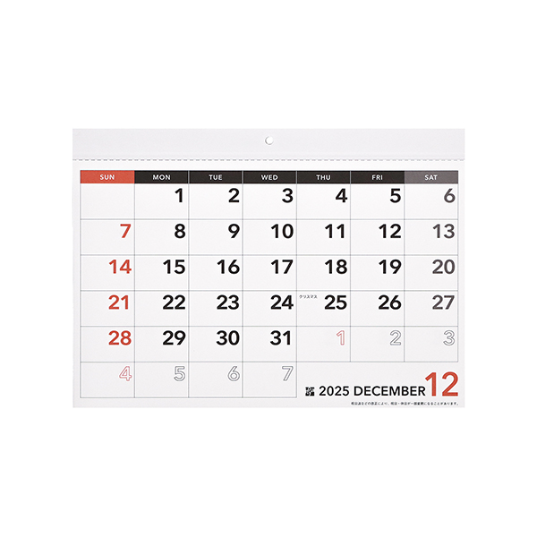 ジャストA4サイズの使い易いマンスリータイプのカレンダーです。