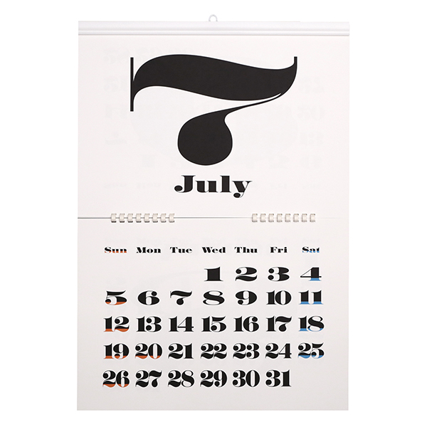 特徴的なタイポグラフィーによってデザインされたカレンダー。