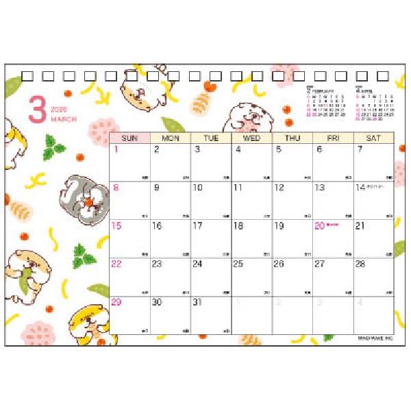 毎月めくるのが楽しくなるような、愛くるしいしばんばんがたくさん詰まったカレンダー。