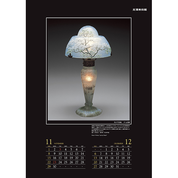 北澤美術館収蔵のガラス工芸のカレンダーです。