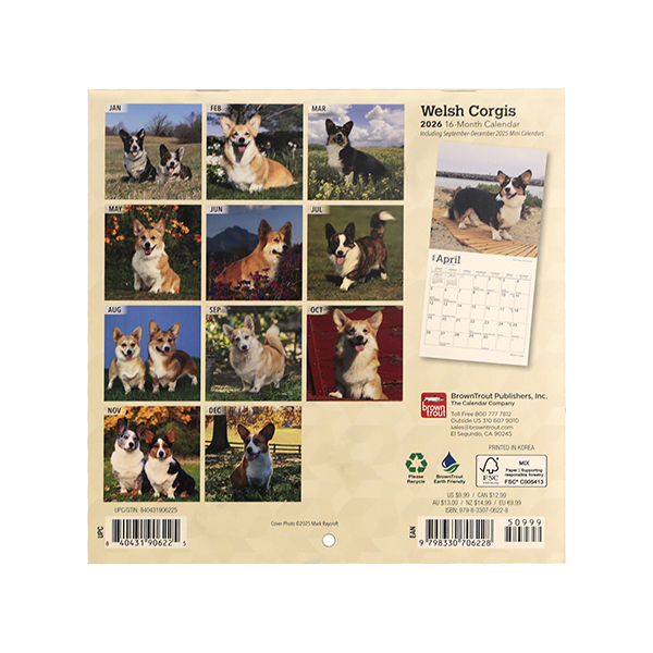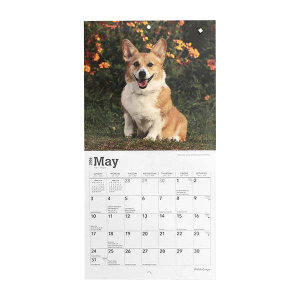 このカレンダーは、カーディガンとペンブロークの両方の品種が掲載されており、コーギーファミリーファンには新年の必需品です。