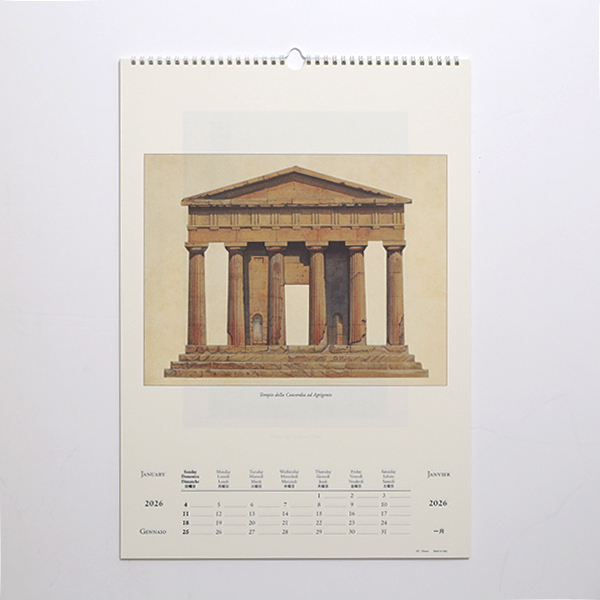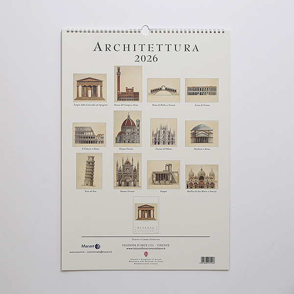 サンマルコ寺院、コンコルディア神殿、コロッセオなど、イタリアの有名な建築物をフィーチャーしたカレンダー。