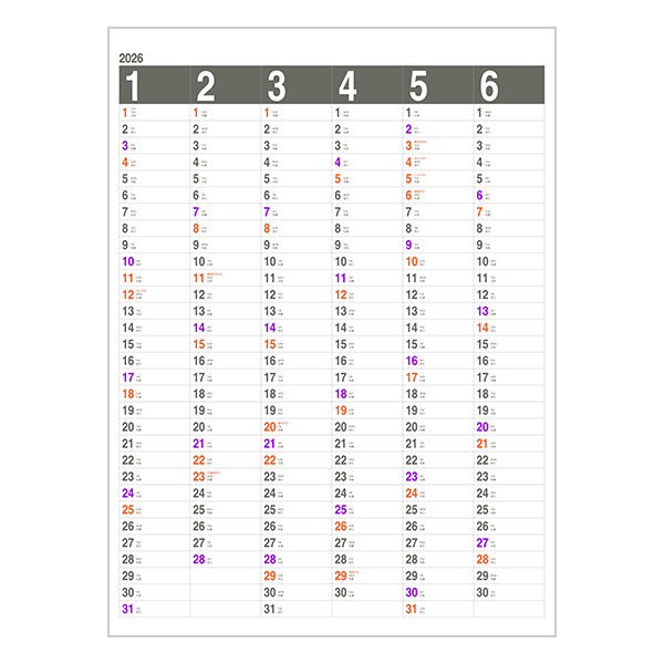 最後のページに半年ごとのカレンダーが前半と後半1枚ずつ付いており、切り離してご使用頂けます。