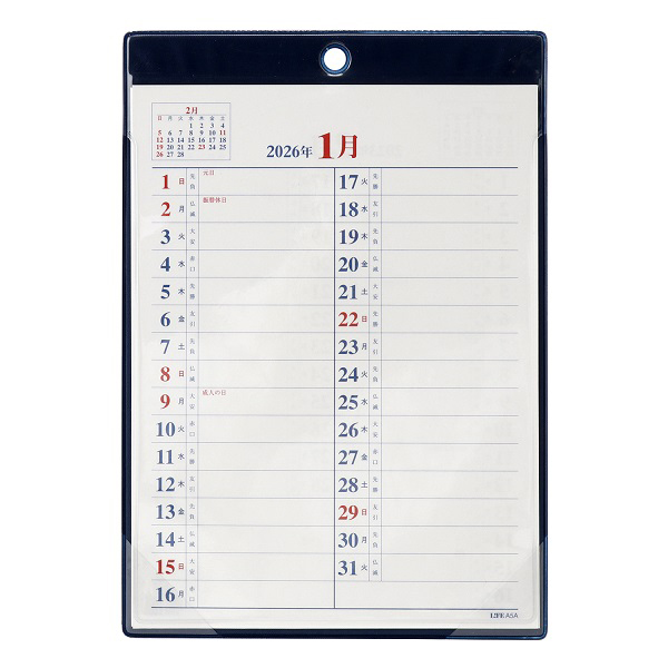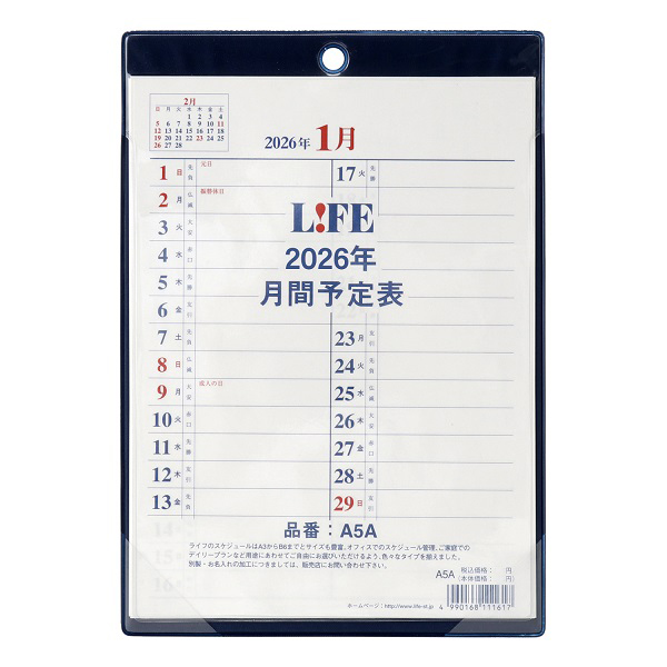 壁掛兼用型(タテ)月間予定表。