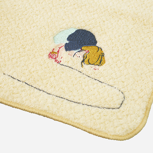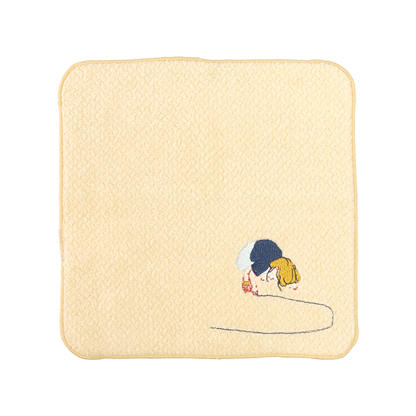 北原明日香のイラストを繊細に刺繍で再現したタオルハンカチです。