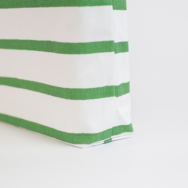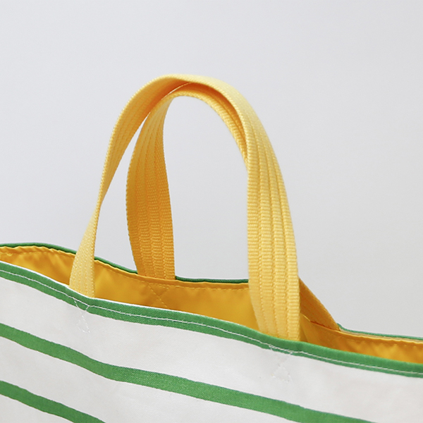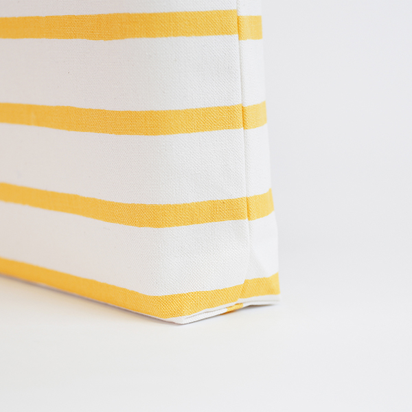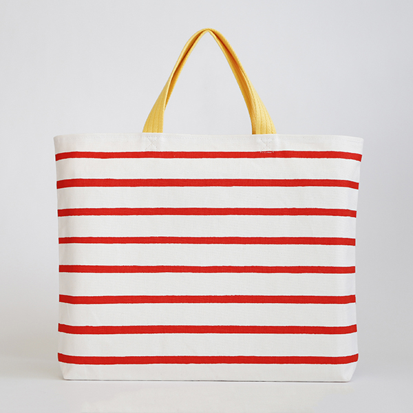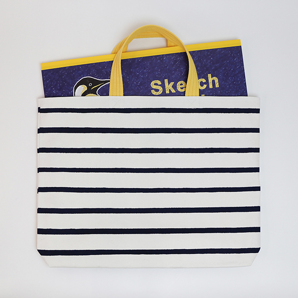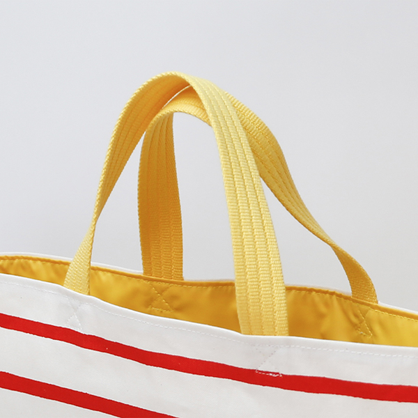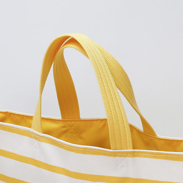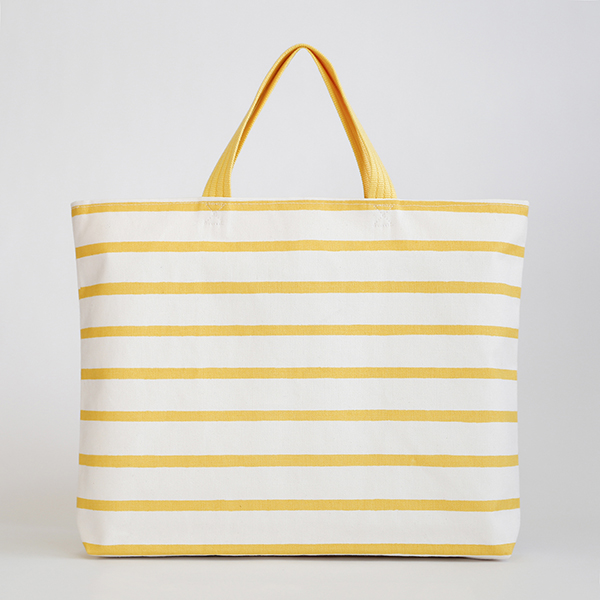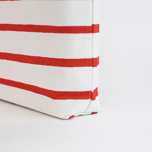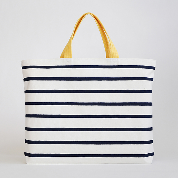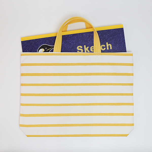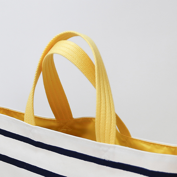 丈夫でありつつ軽やかに運べるように、バッグの生地もアップデート。表生地には薄手の帆布を用い、ハンドルを厚手のものに変更。用いた帆布は最も薄手の11号。柔らかながら適度にハリもあり、バッグの中身が少なくても四角い形状が保たれやすくなりました。