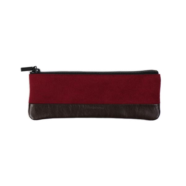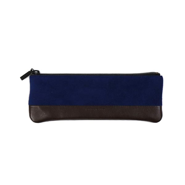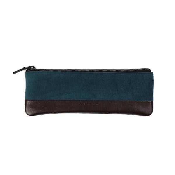 上質なスエードを想わせるやわらかな生地にきめ細やかな牛革をあわせた、なめらかな質感のペンケースは、ハサミ・メイク道具などのツール類やメガネなど、筆記具以外への応用もしやすく便利。