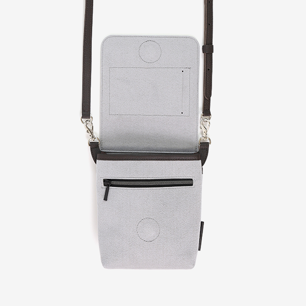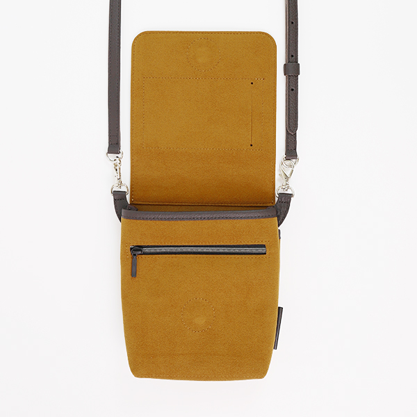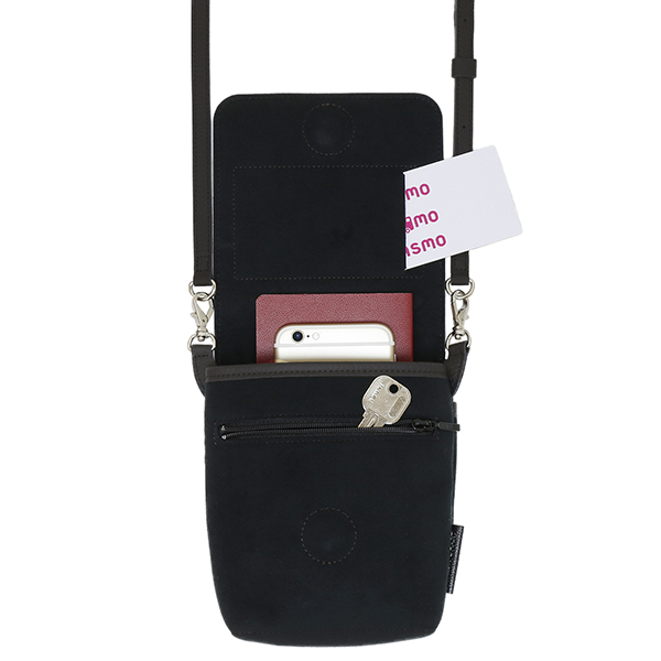 たとえば、空港や旅先で、スマートフォン・コンパクトウォレット・IC・カード乗車券・パスポートの持ち運びに。オフィスで、IDカード・ペン・スマートフォンの持ち運びに。気分転換のウォーキングにスマートフォンと家の鍵、小銭だけを携えて。まるで洋服のポケットのように欠かせない持ち物をまとめ、移動のシーンをよりここちよくします。