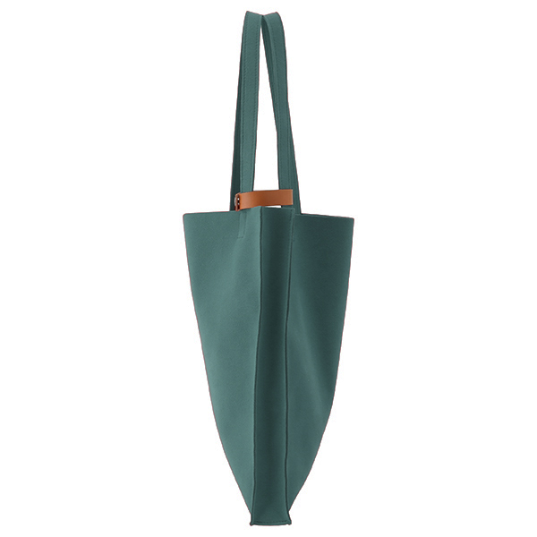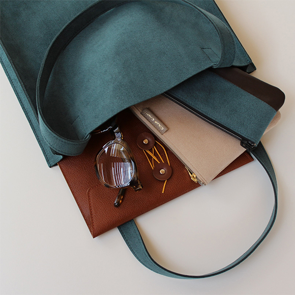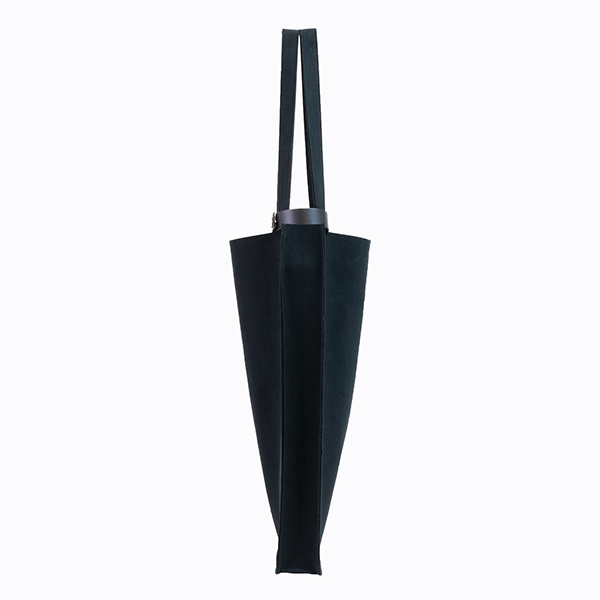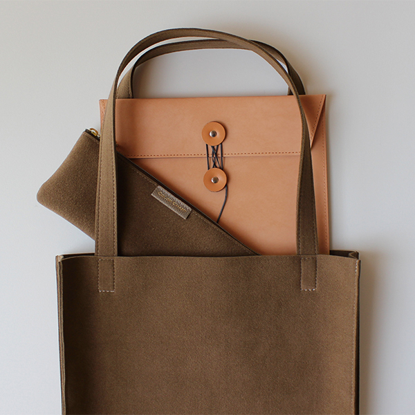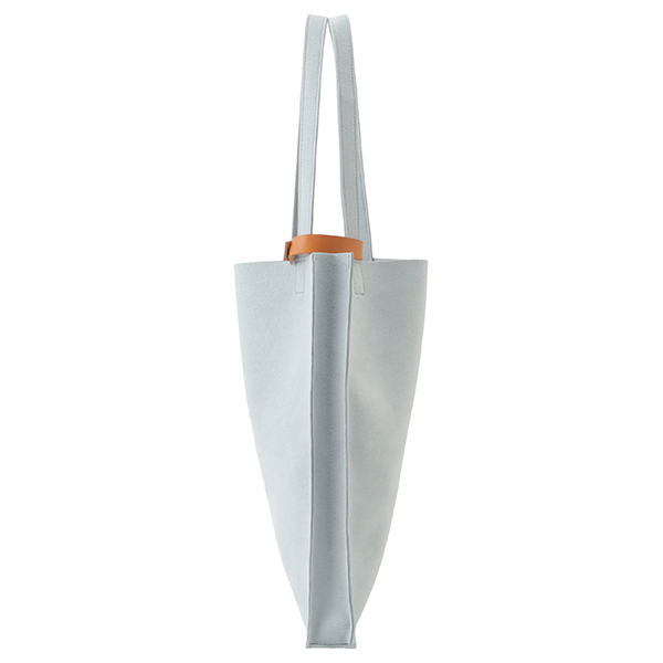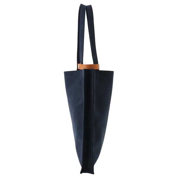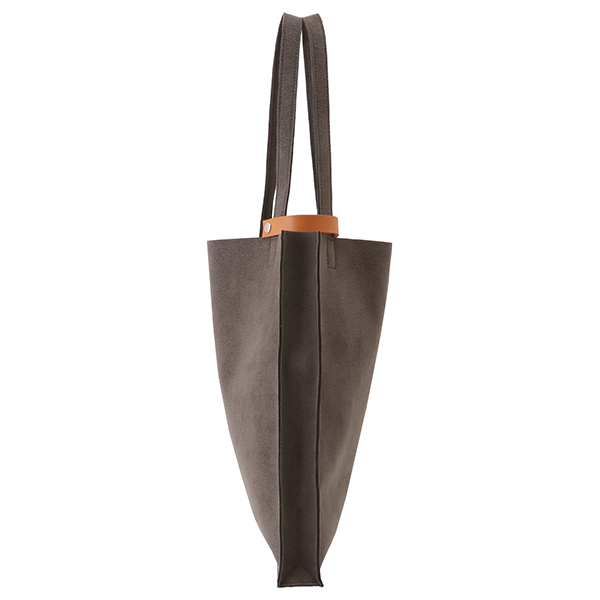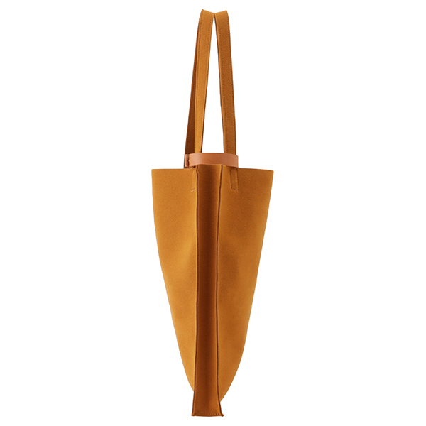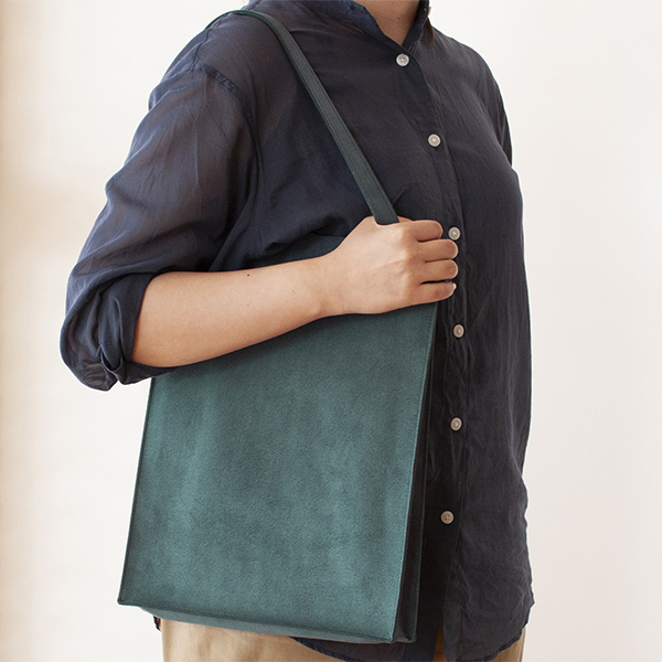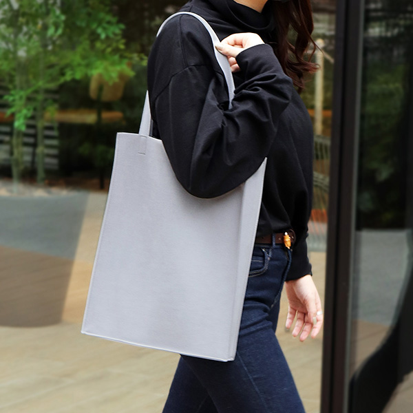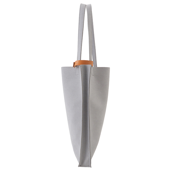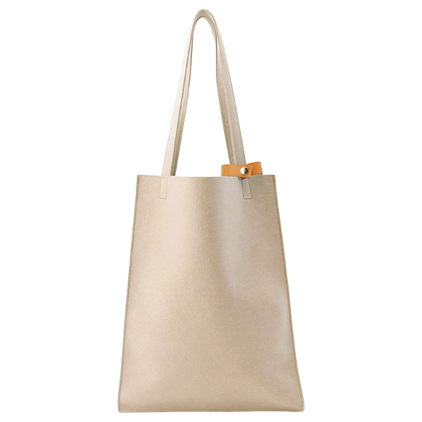 荷物を運ぶ姿がいつも美しくスマートであるようにと設計されたマチ付きトートは、柔らかな生地を用いながら、紙製ショップバッグのような直線的フォルムが特徴です。モノをいれても美しく保たれ、ビジネスにふさわしい良い緊張感のある佇まいです。