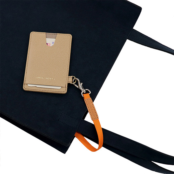 ・内側もシンプル。フック付きのストラップは、カードケースやポーチなど外出先でサッと取り出したい物をつけると便利です。