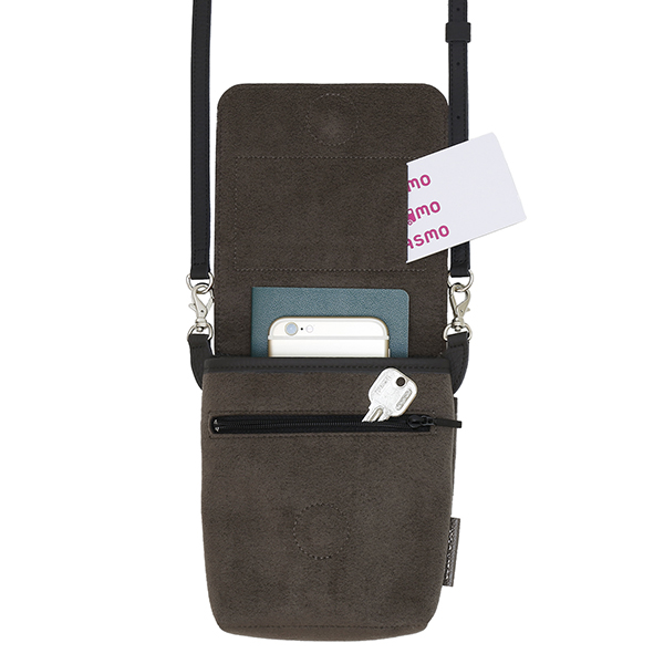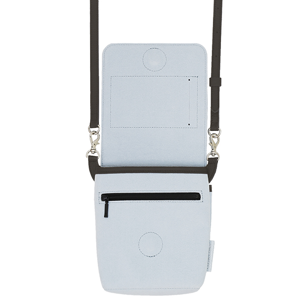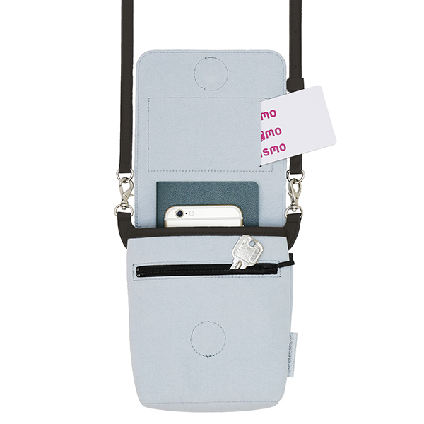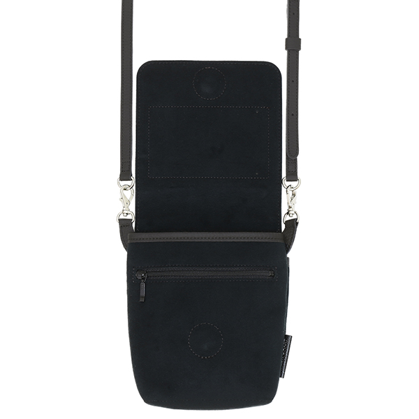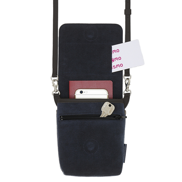 たとえば、空港や旅先で、スマートフォン・コンパクトウォレット・IC・カード乗車券・パスポートの持ち運びに。オフィスで、IDカード・ペン・スマートフォンの持ち運びに。気分転換のウォーキングにスマートフォンと家の鍵、小銭だけを携えて。まるで洋服のポケットのように欠かせない持ち物をまとめ、移動のシーンをよりここちよくします。