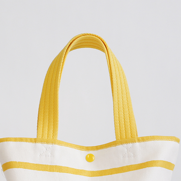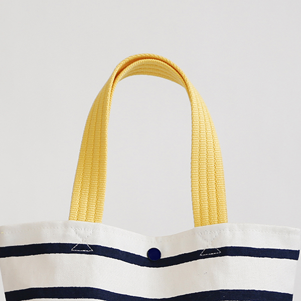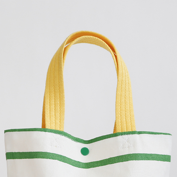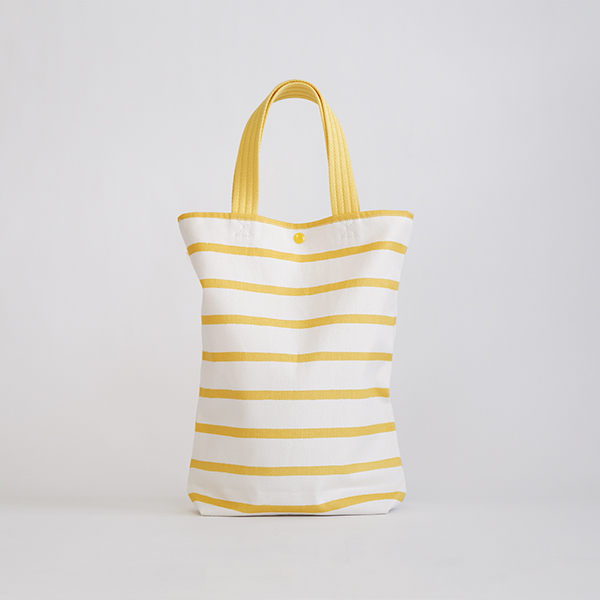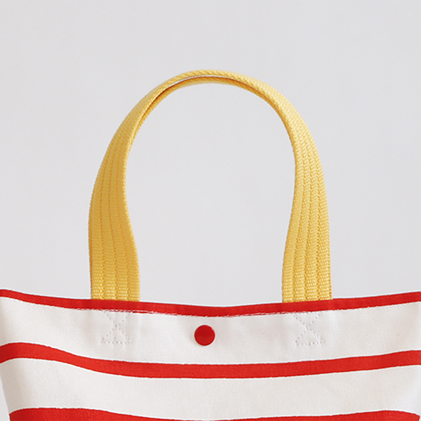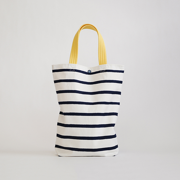 丈夫でありつつ軽やかに運べるように、バッグの生地もアップデート。表生地には薄手の帆布を用い、ハンドルは厚手のものに変えました。用いた帆布は最も薄手の11号。柔らかながら適度にハリもあり、バッグの中身が少なくても四角い形状が保たれやすくなりました。